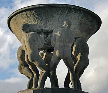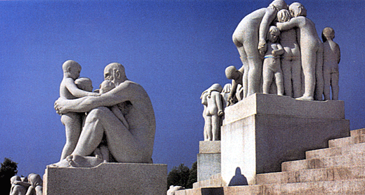 ages, stand on granite parapets on either side of the Bridge. Vigeland’s
